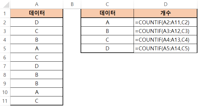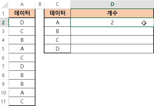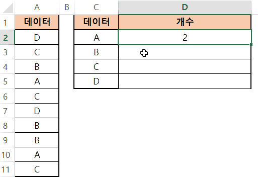 A2와 A3이 전체 데이터 범위에서 벗어나는 바람에 C와 D 갯수가 1개씩 빠졌다는걸 알 수 있네요