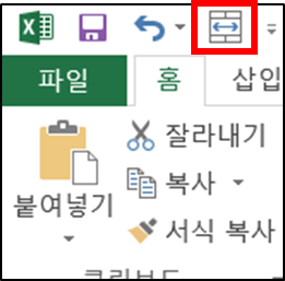 저기 있는 버튼들은 엑셀 설정 내에 있는 [빠른 실행 도구 모음]에 등록되어있는 기능입니다.