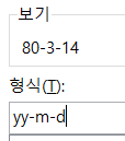 한가지 예로, yy-m-d 라고 입력해볼까요 ?