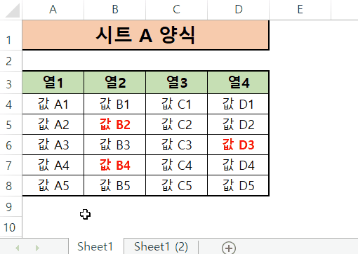 시트명 (Sheet1) 옆에 (2)가 추가되었고 서식과 값이 완벽하게 동일한 시트가
