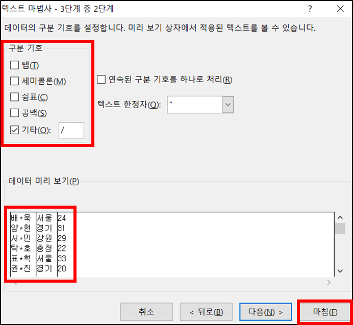 | 엑셀 텍스트 나누기 실전 활용법 ★(특정 문자 / 일정한 길이 기준으로) (0) | 2022.12.26 |